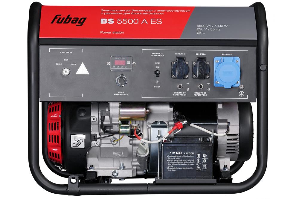 Бензиновая электростанция с электростартером и коннектором автоматики FUBAG BS 5500 A ES с номинальной мощностью 5 кВт представляет собой надёжный и долговечный агрегат. Эта модель отлично подходит в качестве источника резервного электроснабжения для загородного дома и дачи, а также передвижных торговых точек, бригад, торговых точек, мастерских.